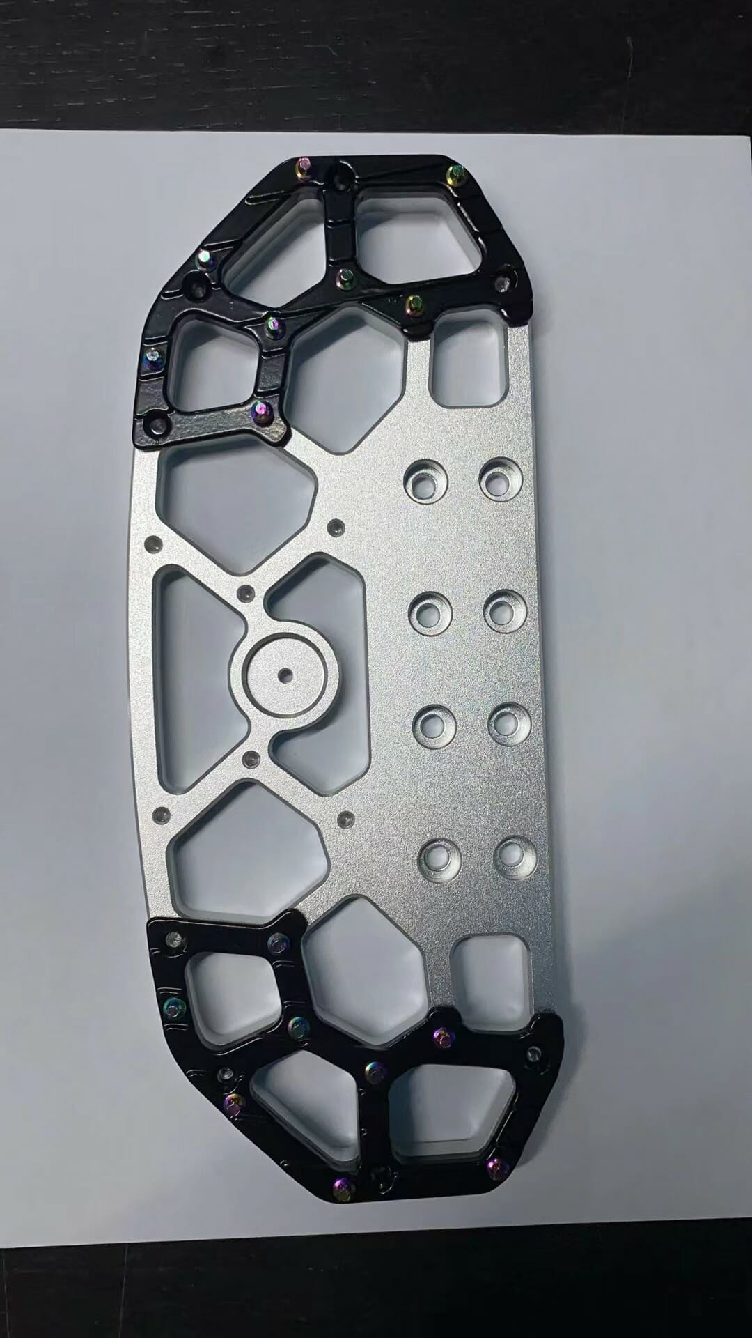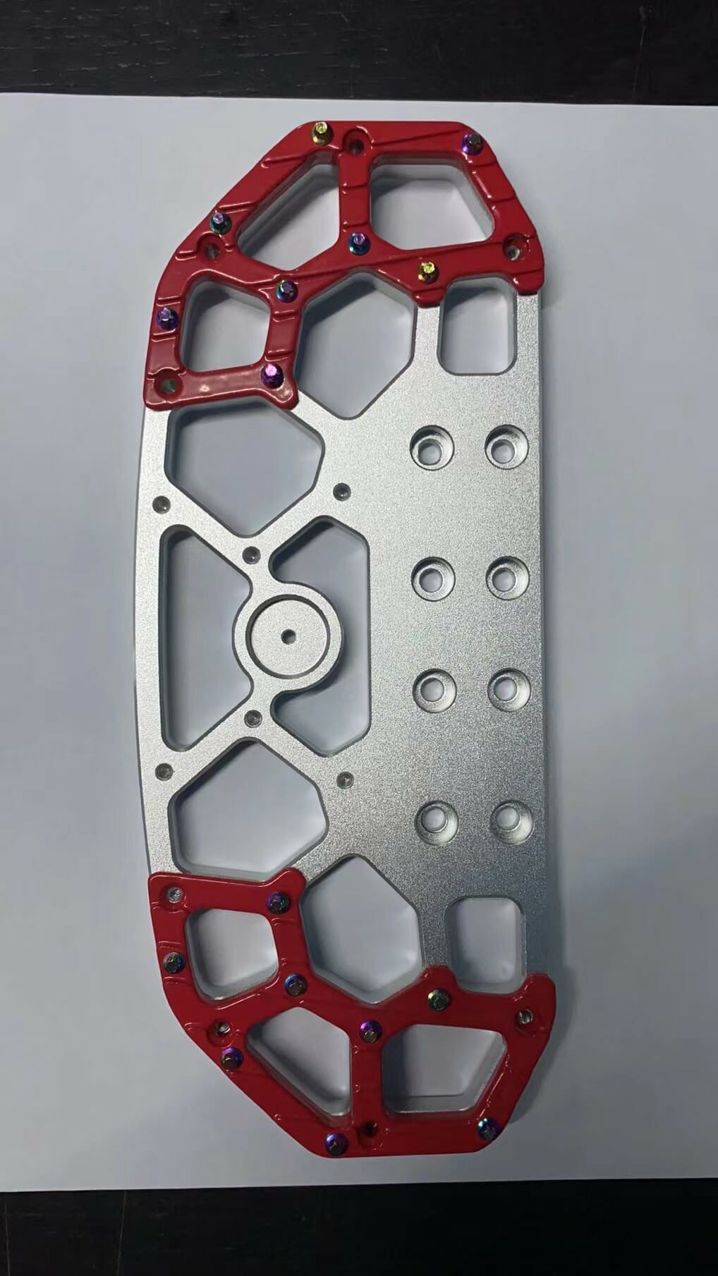 This is the e-RIDES Honey comb removable pedals, code name Naked. The e-RIDES two piece Honeycomb spike pedals are made out of 6061 aluminium, the same alloy material used by Apple for iphones. The e-RIDES honey comb pedals are CNC cut, adjustable incline with heel and toe assist