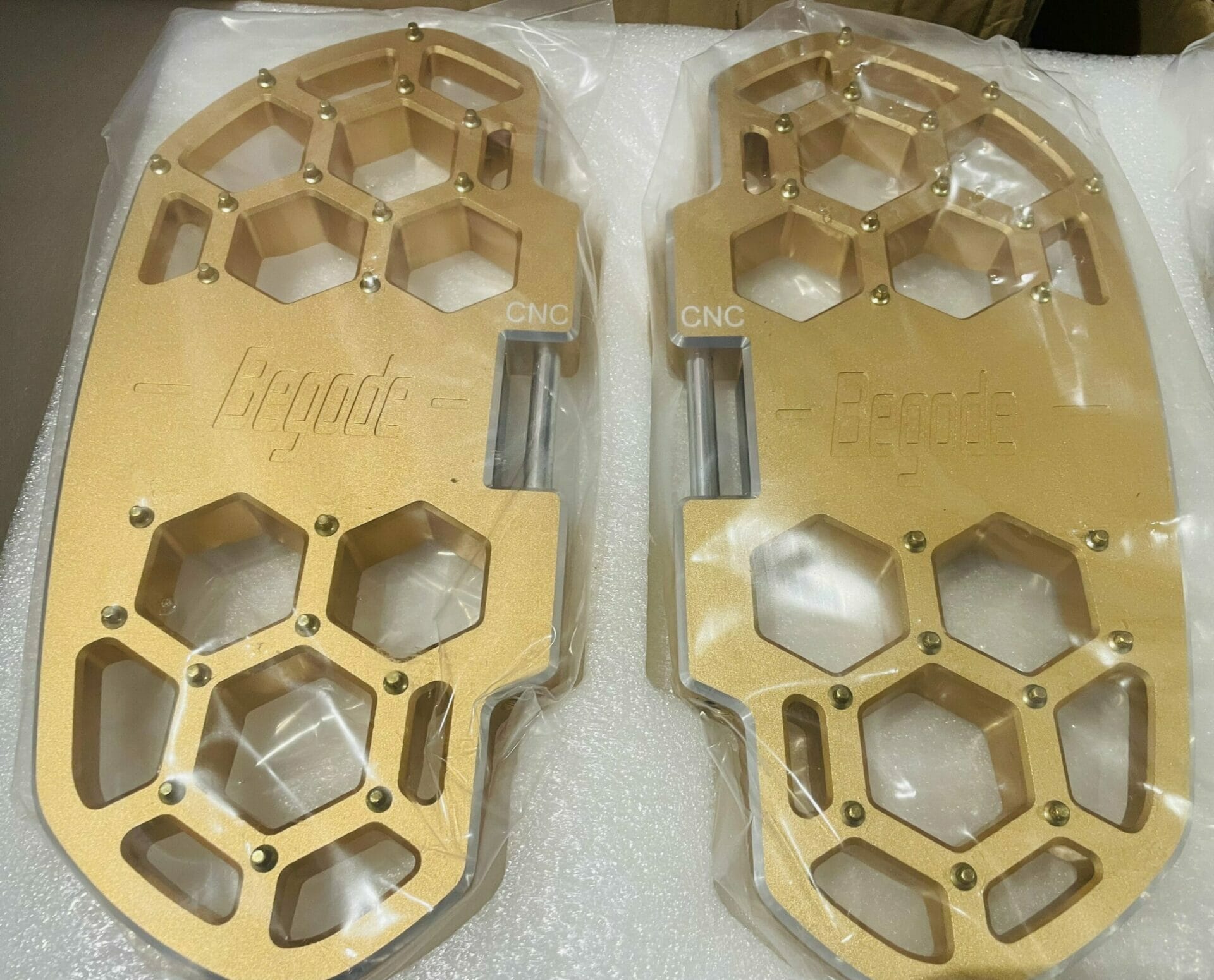 Begode Honeycomb pedals sold by e-RIDES.com. The pedals are CNC machined from aluminum alloy anode treatment. Comes in Black, Gold and Silver.