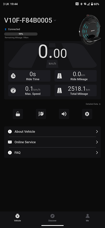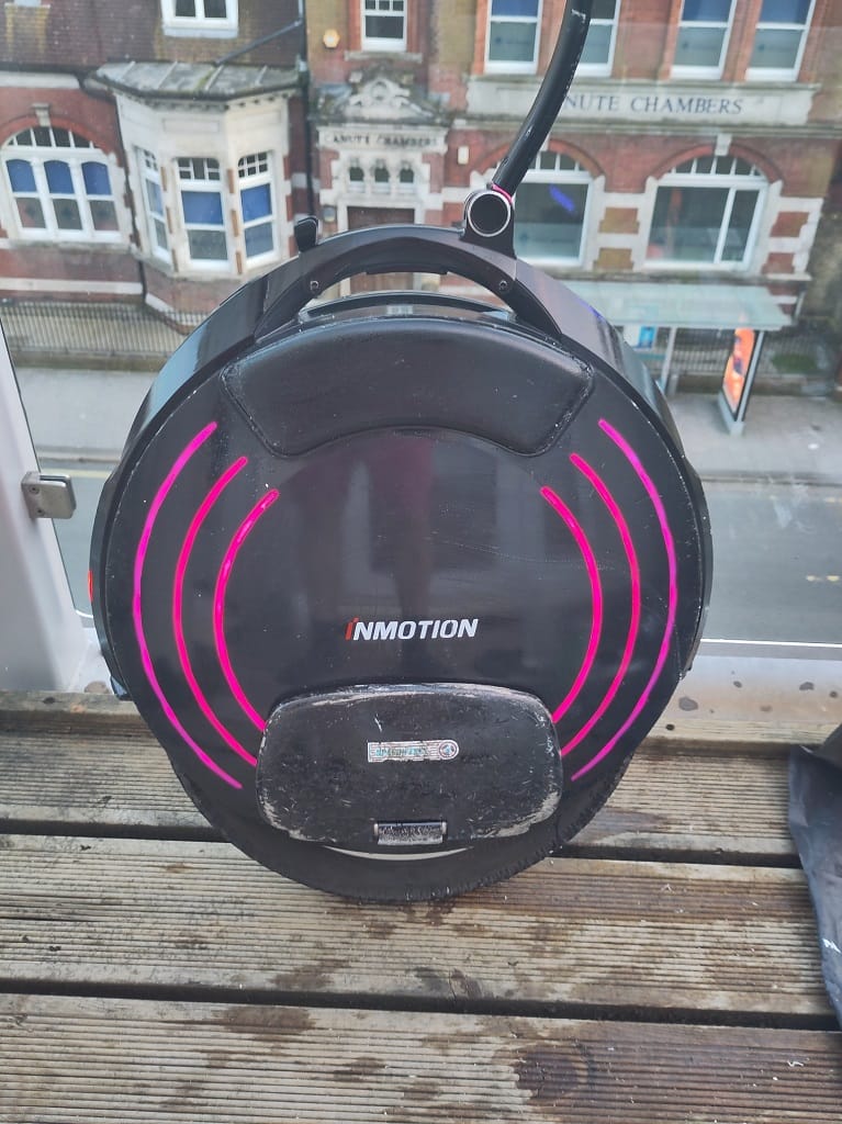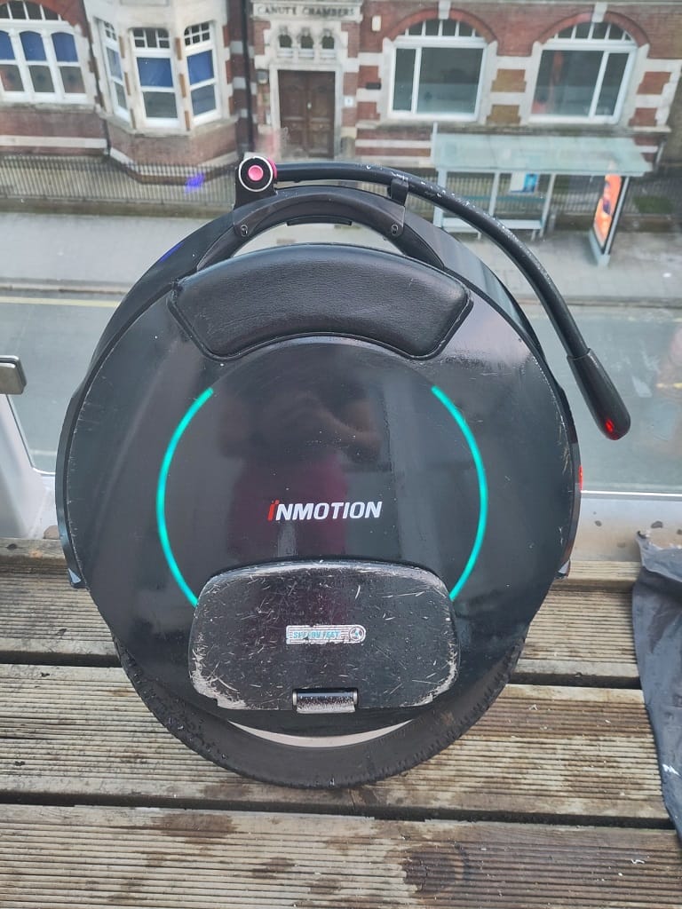 Headlight non functioning, otherwise in working order. 2518km across two owners, I’ve had it for 18 months, I learnt to ride on this wheel, as did the owner before me. It consequently has been crashed a few times and so has scratches as can be seen, underneath the light part has broken off for example. Good tread on tyre, no damage to rim (see video). Makes a good first wheel for a larger rider, and good general use wheel as it’s light enough to carry briefly, but it also has a respectable range and speed.