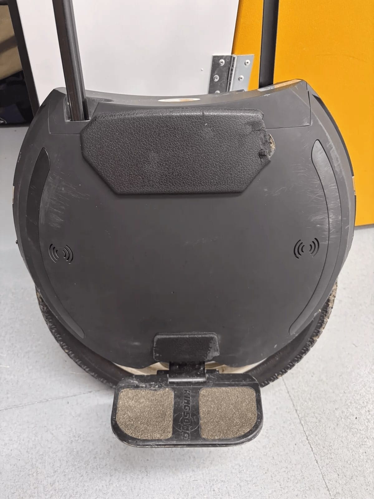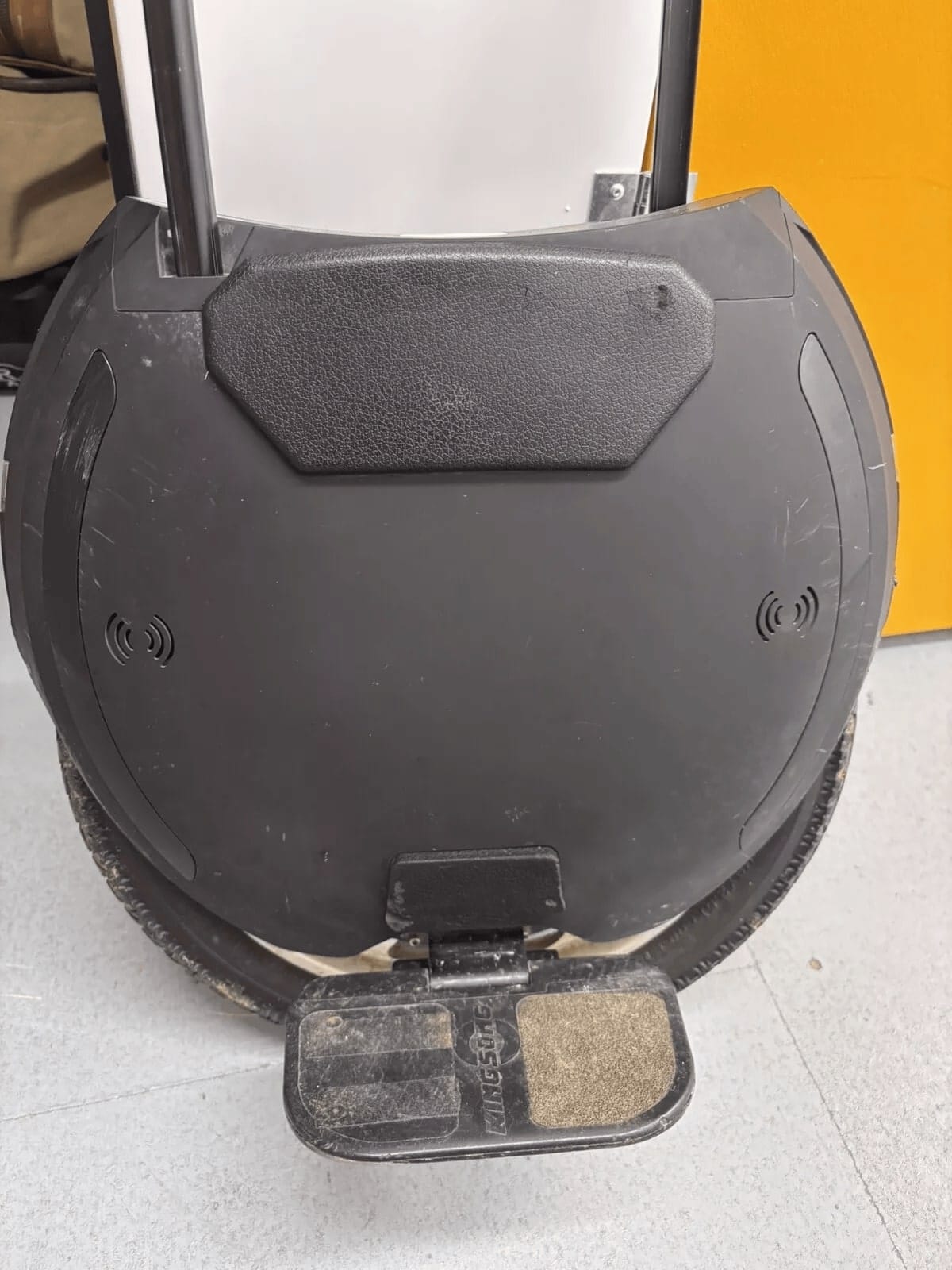 The Kingsong KS18XL has an inbuilt trolly handle for those times where you are not allowed to ride, and also has front and rear lights, making you very visible.